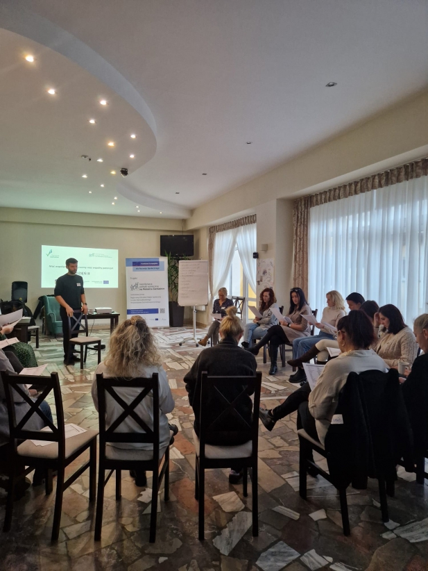 W dniach 4-5 grudnia 2025 r. odbyło się w Sarbinowie spotkanie sieciujące pn. "Moc współpracy - odkrywamy nasz wspólny potencjał" zorganizowane dla przedstawicieli Ośrodków Pomocy Społecznej, Centrum Usług Społecznych i PCPR z powiatu polickiego. Podczas spotkania uczestnicy prezentowali obszary działań organizacji, które reprezentują ale również uczestniczyli w części warsztatowej dotyczącej komunikacji zespołowej i międzyzespołowej.