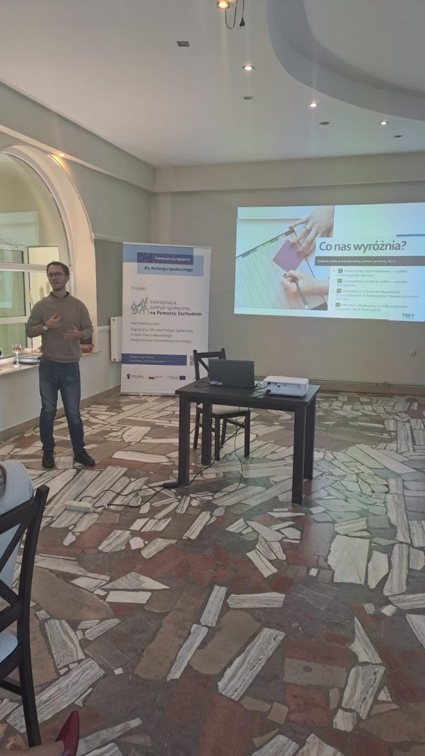 Spotkanie warsztatowe zorganizowane było w ramach projektu realizowanego przez Województwo Zachodniopomorskie / ROPS UMWZ pt. „Koordynacja polityki społecznej na Pomorzu Zachodnim”, Działanie 04.13 Wysokiej jakości system włączenia społecznego współfinansowanego przez Unię Europejską z programu Fundusze Europejskie dla Rozwoju Społecznego 2021-2027 (FERS) ze środków Europejskiego Funduszu Społecznego Plus. Numer projektu FERS.04.13-IP.06-0010/23.