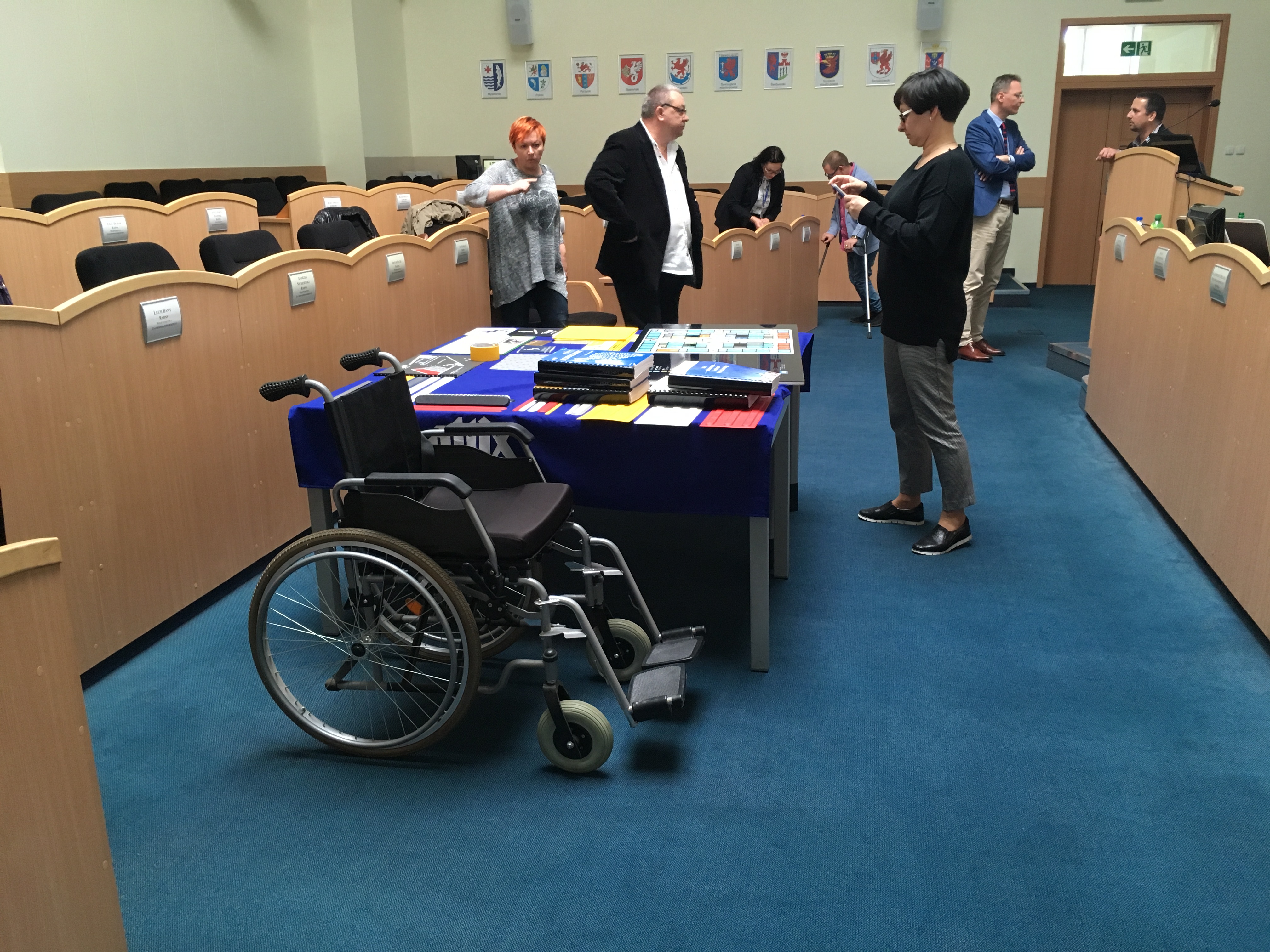 Integralną częścią seminarium była wystawa sprzętu rehabilitacyjnego. Każdy z uczestników poprzez założenie okularów symulujących wady wzorku, słuchawek wygłuszających czy pokonanie krótkiej trasy na wózku inwalidzkim, mógł przekonać się z jakimi trudności na co dzień mierzą się osoby z niepełnosprawnością. Takie doświadczenie na pewno pozostanie w pamięci osób zdrowych na dłużej, a w przyszłości może przyczynić się do wzrostu empatii i podejmowania właściwych kierunków działań na rzecz osób niepełnosprawnych. Na wystawie zostały również zaprezentowane urządzenia, które eliminują bariery i ułatwiają codzienne funkcjonowanie osób niepełnosprawnych.