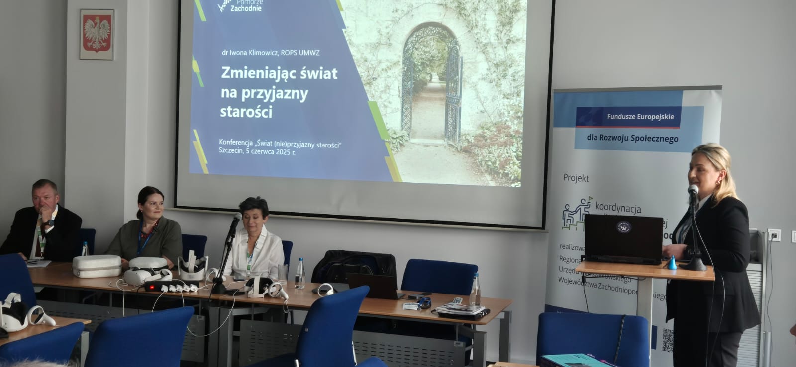 Podczas wystąpienia towarzyszącego otwarciu konferencji Wicemarszałkini Anna Bańkowska opowiedziała o działaniach realizowanych przez Województwo Zachodniopomorskie na rzecz seniorów, m.in. Zachodniopomorskiej Karcie Seniora, licznych uniwersytetach III wieku, tworzonych 9 Centrach Aktywności i Wolontariatu Seniorów w ramach projektu Social Silver oraz 13 Centrach Usług Społecznych funkcjonujących na Pomorzu Zachodnim.